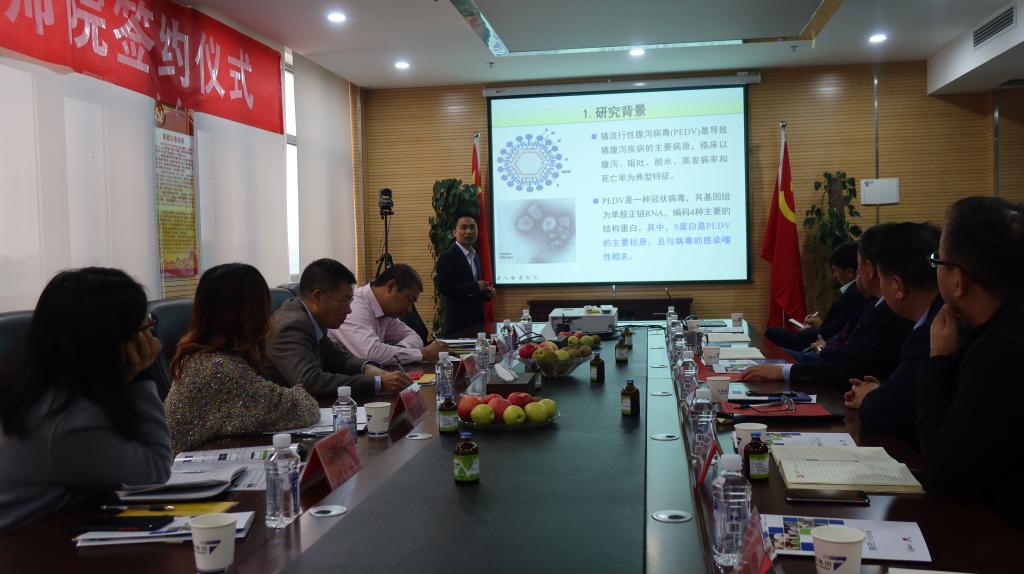 接着,由天华项目联系人孙国印总裁代表企业对项目启动、签约、执行过程进行了全面回顾,充分肯定了项目组所取得的成果。分管销售的赵光豪副总裁表示,经推广应用,校企联合研制的仔猪腹泻卵黄抗体制剂具有安全、高效的优势特点,市场前景广阔。