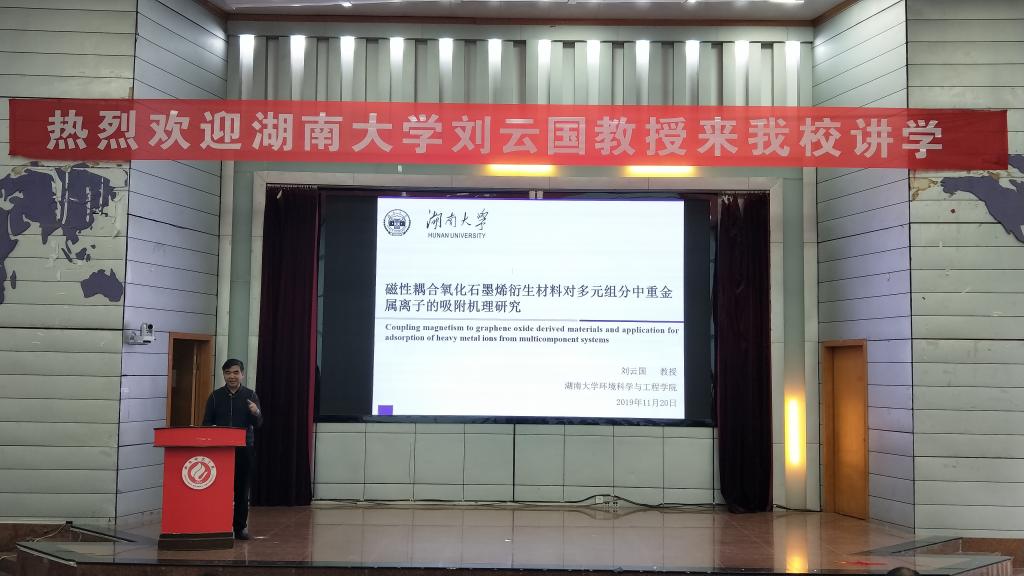 为营造良好的校园学术氛围,加强学科建设,促进学术交流,11月20日下午四点二十,betway官网特邀湖南大学环境科学与工程学院刘云国教授在西校区学术报告厅做了题为“环境科学与工程研究思路与方法探讨”的学术报告。报告会由生命科学与环境学院院长曹丽敏主持,彭晖书记,易诚、杨海副院长,黄斌艳、罗远来老师及师生代表约200余人聆听了本次讲座。