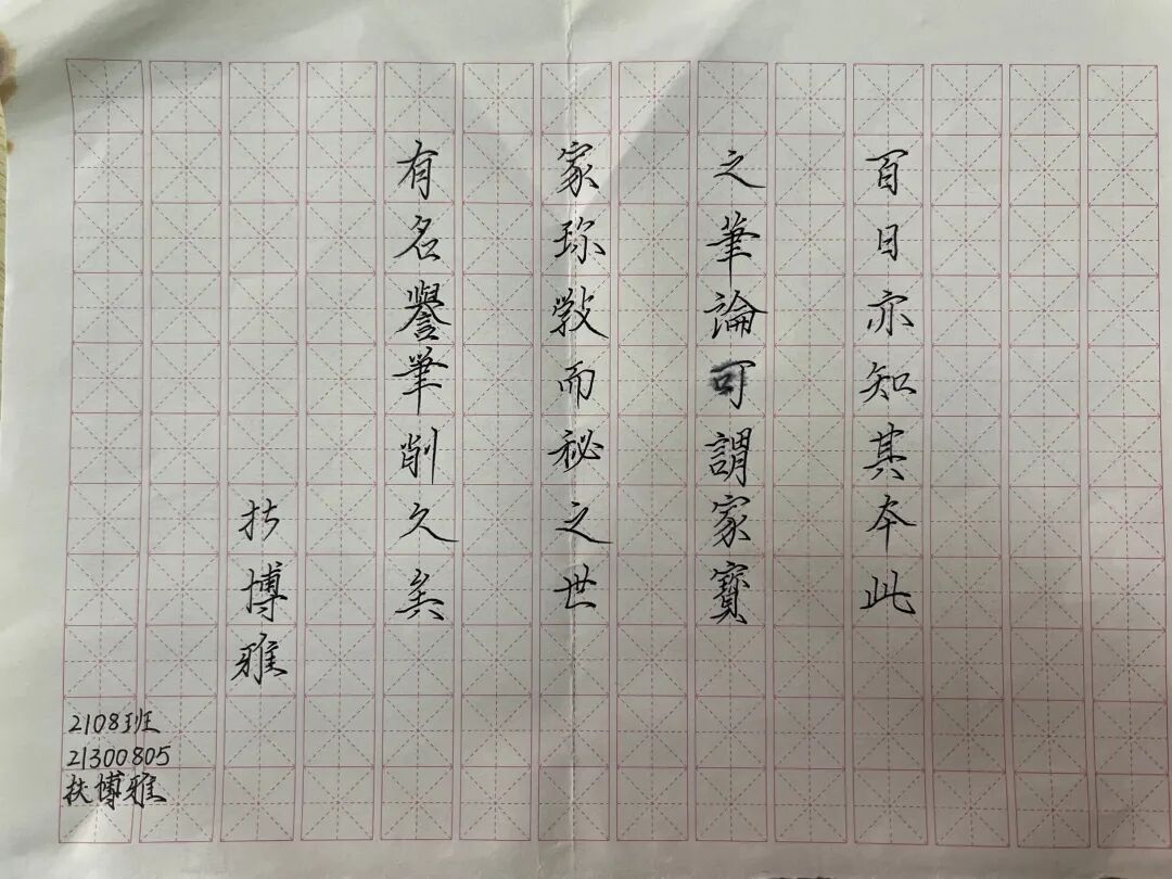 在日常教学中,教师的板书就是学生典范,一笔一画都给学生起着榜样作用。betway官网始终注重师范生的书法,科技创新卓越师范班的同学们在开课期间认真学习书法,交上来的作品各具特色,或舒展大方、清秀雅致,或苍劲有力、入木三分,看起来韵味十足,展现了扎实的书写基本功。