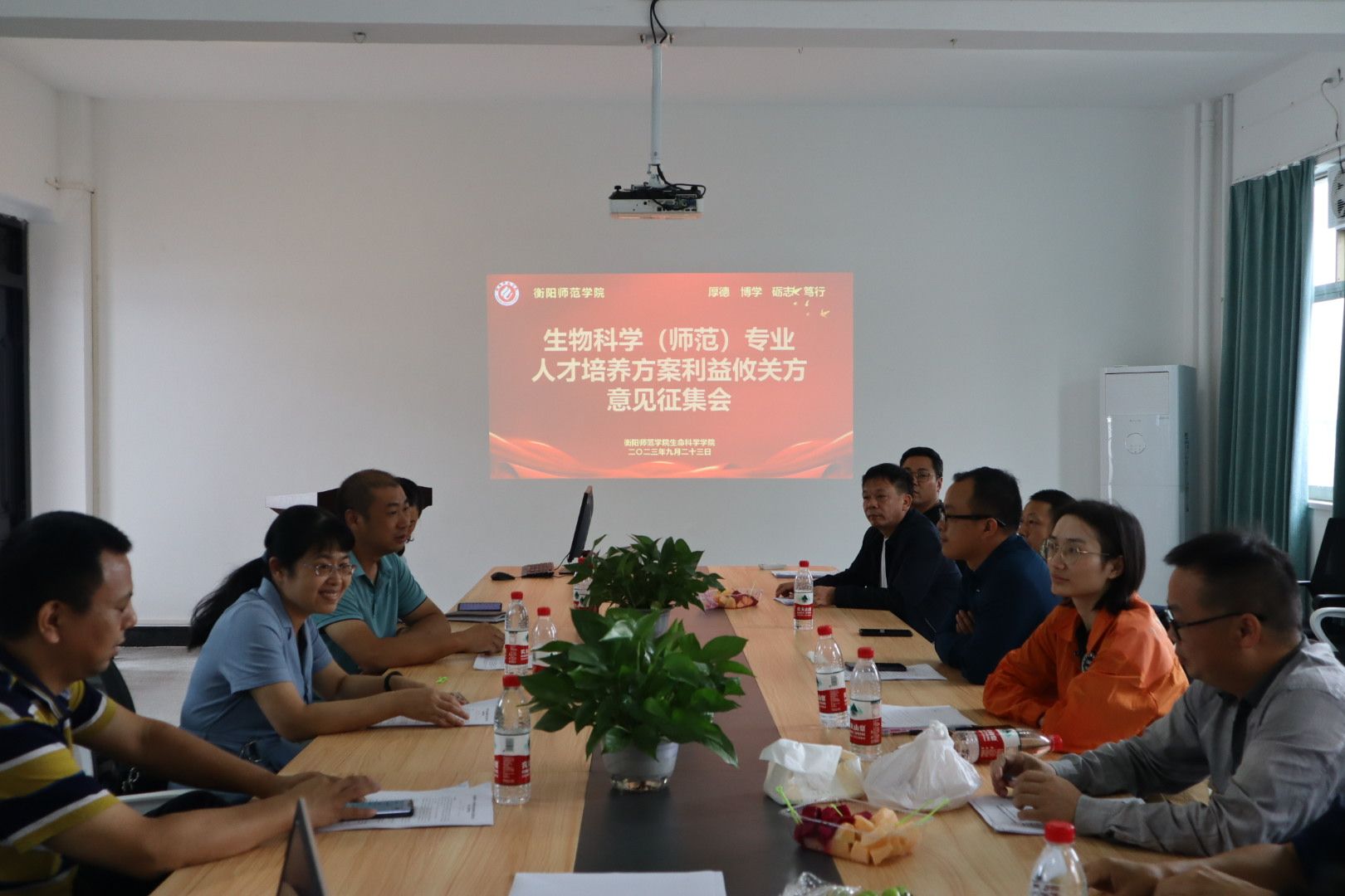 为全面提高师范人才培养质量,深化人才培养改革,2023年9月23日8:30,betway西汉姆联官网在综实楼601室召开生物科学(师范)专业2023版人才培养方案审议会议、意见征集会和新时代初中生物实验课程体系的构建与实施项目研讨会。会议由杨海副院长主持,学院党总支书记曹丽敏、院长易诚、副书记陈雅斐、副院长陈晓华,系主任唐兴、王帅博士、刘健晖老师,衡阳市成章实验中学、衡阳市一中、衡南县一中等中学骨干教师代表参与本次会议。