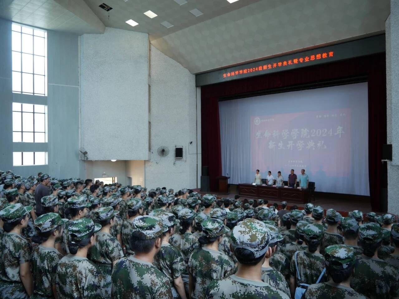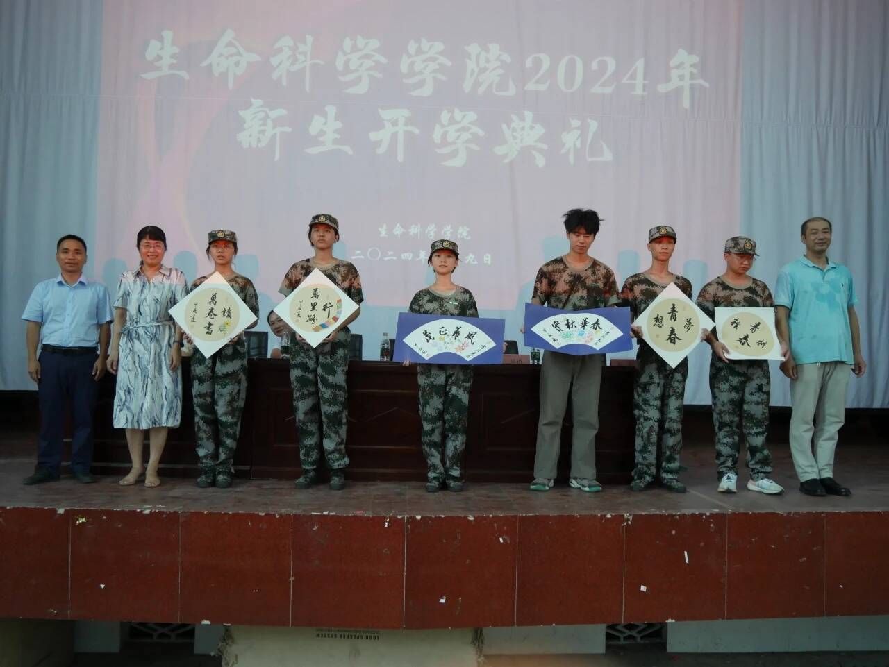 新生开学典礼在悠扬的校歌声中结束。