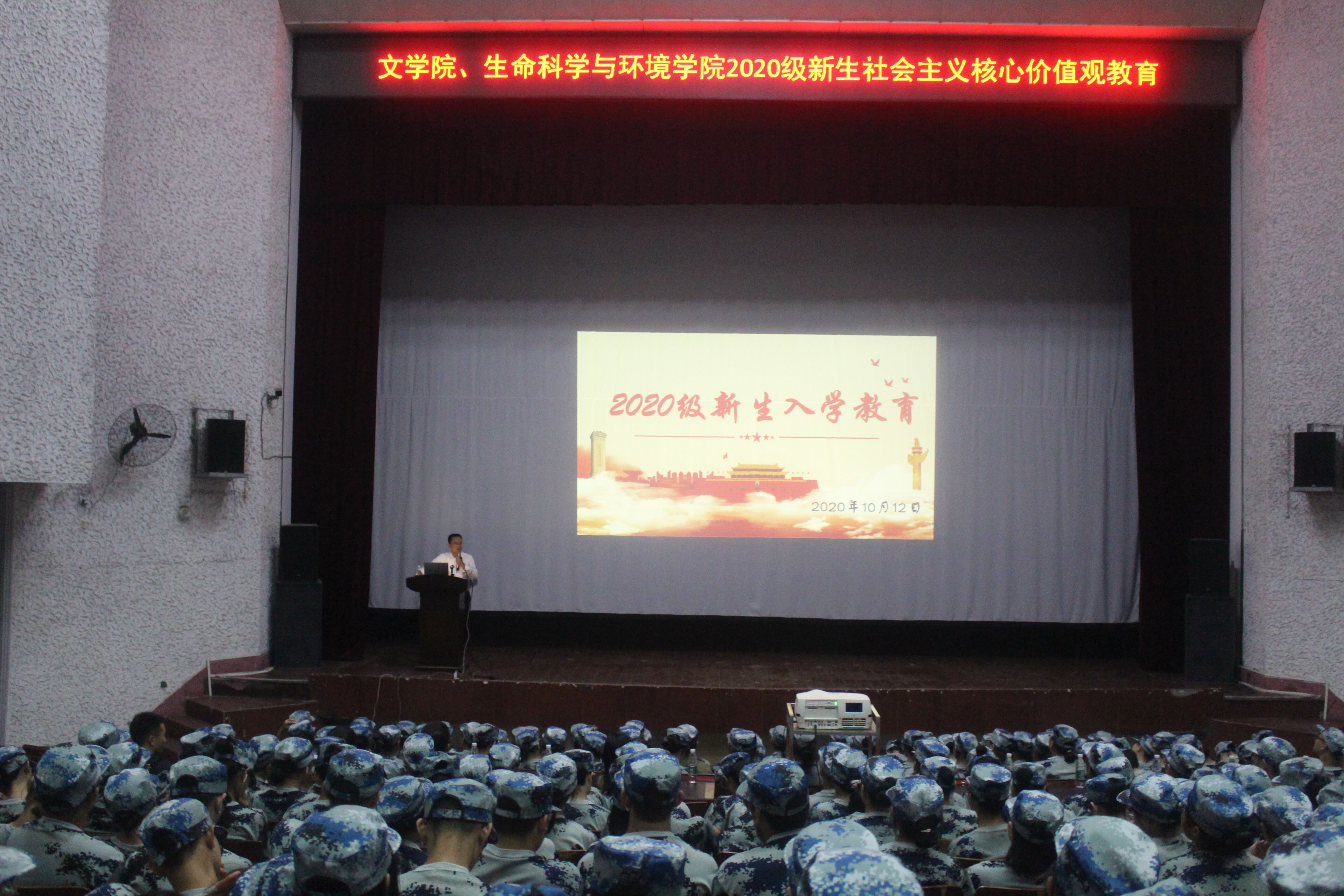 为增强学生对社会主义核心价值观的理解,加强学生思想道德建设,betway官网与文学院于10月12日晚七点在排演厅展开了2020级新生社会主义核心价值观教育,betway官网党总支书记彭晖、党总支副书记蒋湘祁、文学院党总支书记张云峰、党总支副书记何颖,以及双方学院的辅导员老师莅临本次会议。会议由彭晖书记主持,学生工作处处长蒋杰为主讲人。