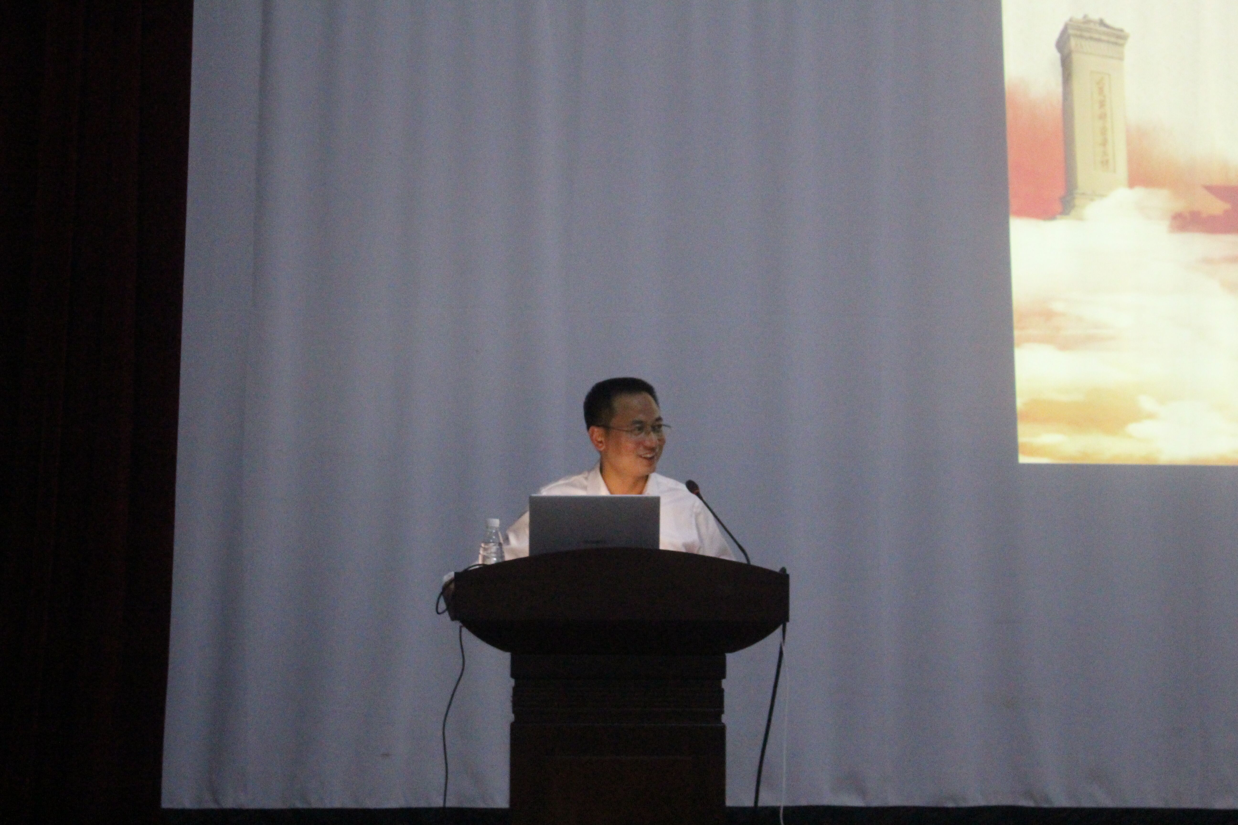 最后,蒋处长提出一个问题,“如何培育和践行社会主义核心价值观?”紧接着自己进行了相应的解说。国家层面来讲,要明国家之大德;社会层面来讲,要守社会之公德;公民个人层面来讲,要严个人之私德。我们大学生要严于律己,认真遵守各种“德”,争做新时代的新青年。