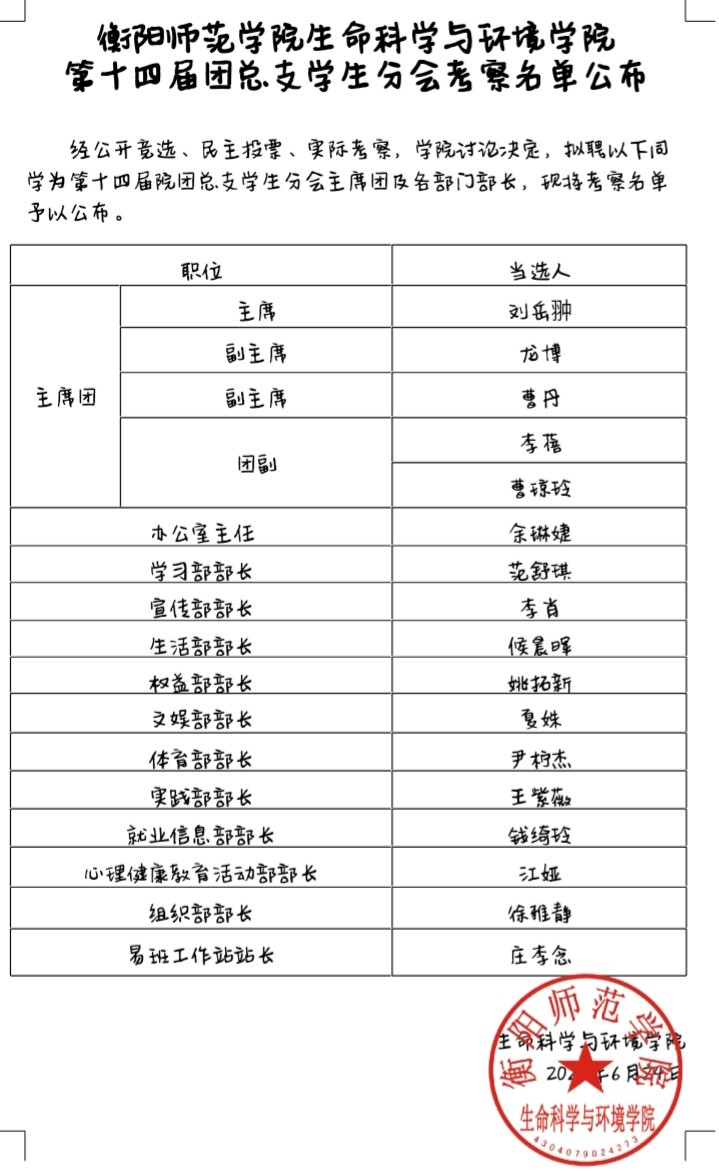 听取报告后,主持人宣布生环学院第十四届分团委学生会主席团和各部门候选人名单,以及检票,记票人名单,检票人罗佳欣上台宣誓。