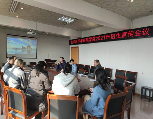 2021年是采用“3+1+2”模式的新高考元年,也是实行“学院专业组”招生的开局之年。为进一步统一思想,明确分工,降实责任,形成合力,顺利推进招生宣传工作。1月15日,生环学院在千禧楼六楼会议室召开招生宣传工作专题会议。学院党政领导、现任及上任专业负责人、实验室主任以及辅导员参加会议。会议由曹丽敏院长主持。