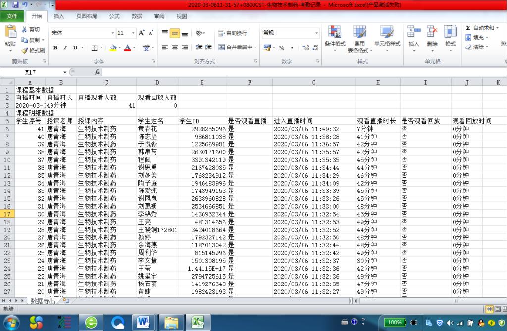 2.考勤:学生观看直播课程,软件会自动考勤、生产听课记录表,占平时成绩的20%。