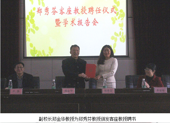 聘任仪式上,曹院长对郑秀芬教授的基本情况及其学术业绩进行了介绍,郑金华副校长代表学校对郑秀芬教授的来访表示了诚挚的欢迎,并为其颁发了betway西汉姆联官网客座教授聘书。