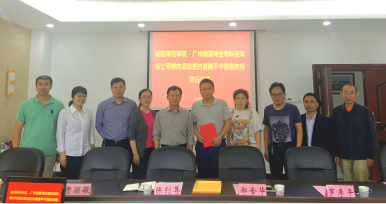 2018年6月1日下午,betway西汉姆联官网与广州格雷特生物科技有限公司校企合作项目签约暨魏平华先生客座教授聘任仪式在东校区学术交流中心举行。广州格雷特生物科技有限公司董事长兼总经理魏平华先生、总经办主任练玲女士、研发部张抒女士,以及betway官网副校长郑金华教授、人事处处长陈列尊、科技处处长罗李平、生命科学与环境学院党总支书记刘艳波、院长曹丽敏、副院长易诚、副院长杨海以及唐青海博士出席签约仪式,仪式由罗李平处长主持。