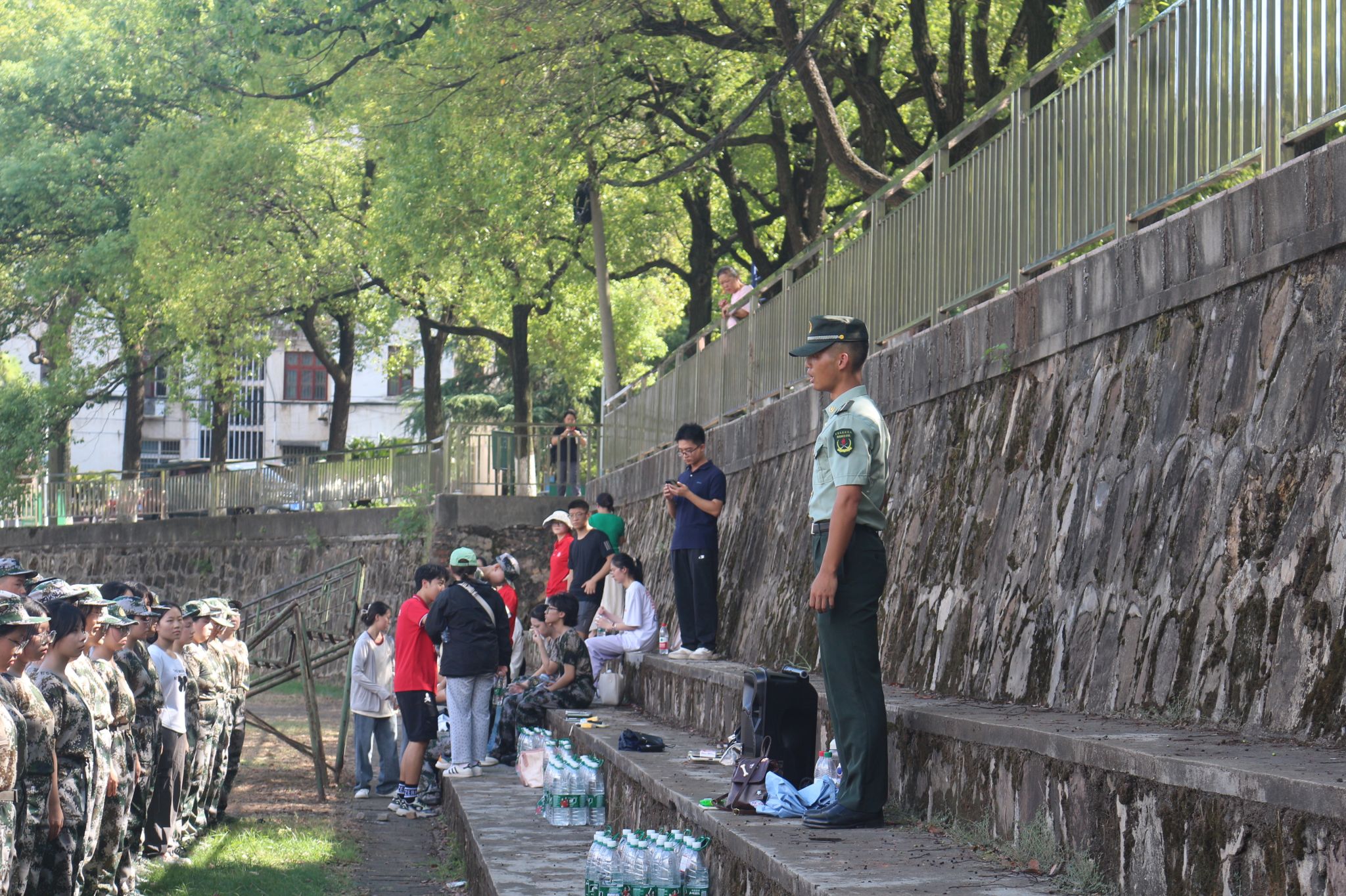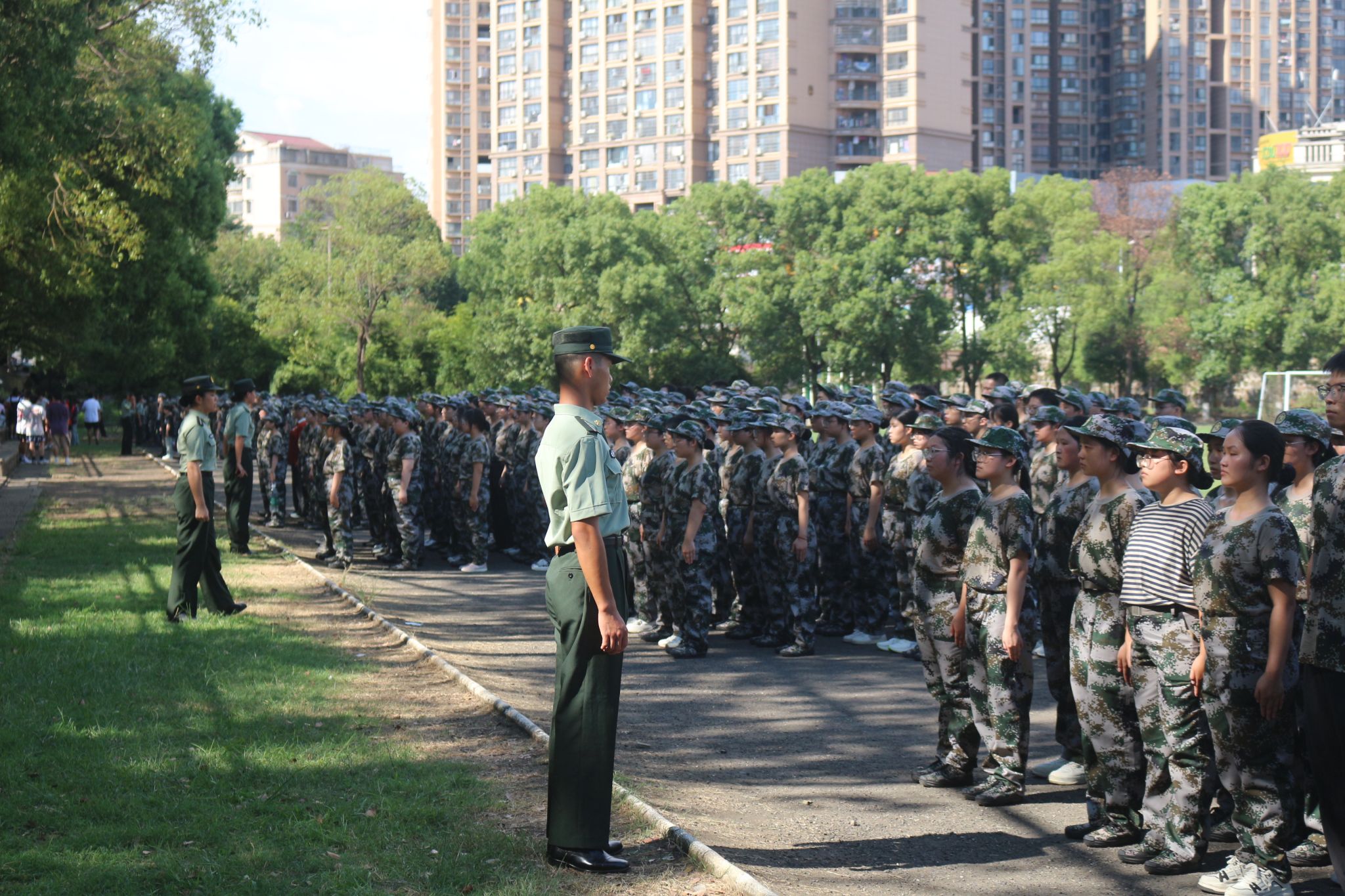 迷彩戎装,英姿飒爽,24级新生们在操场上集合整齐列队。