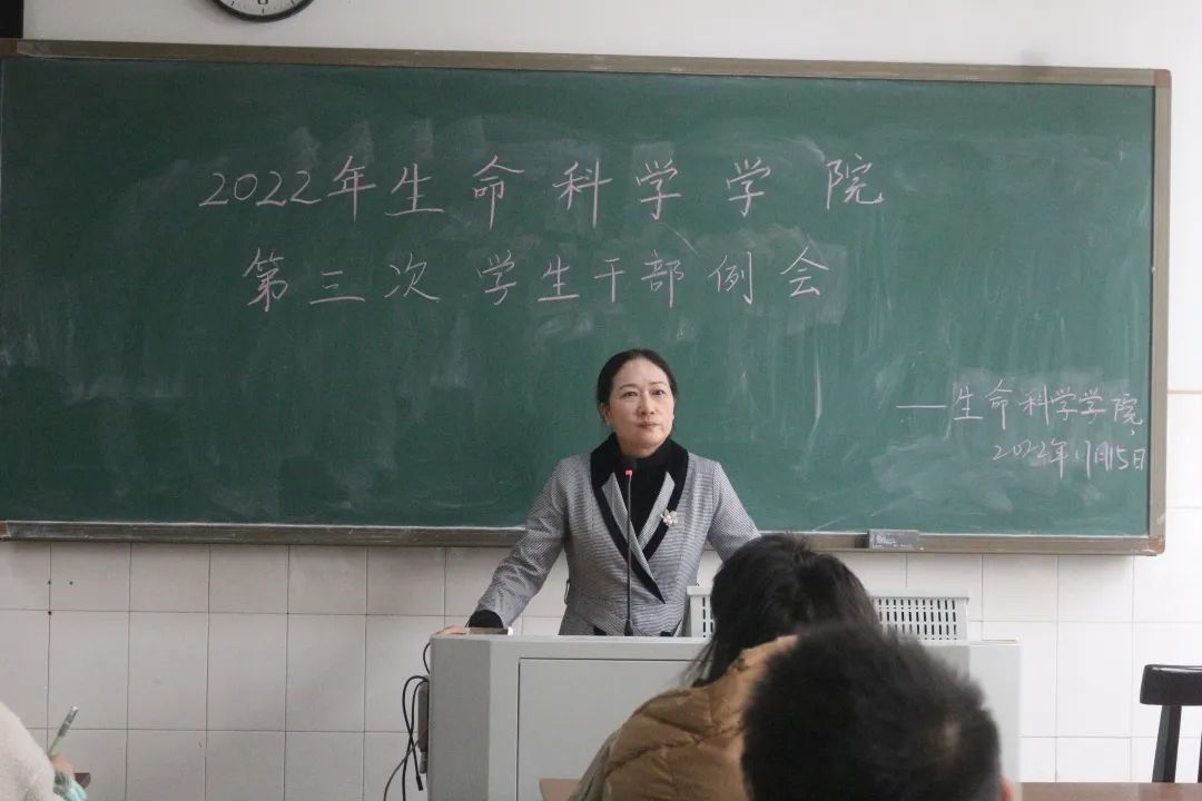 会议第二项,党总支副书记陈雅斐上台发言。陈书记的发言分为两个部分:总结学生工作前期的问题和对学生干部进行了培训。