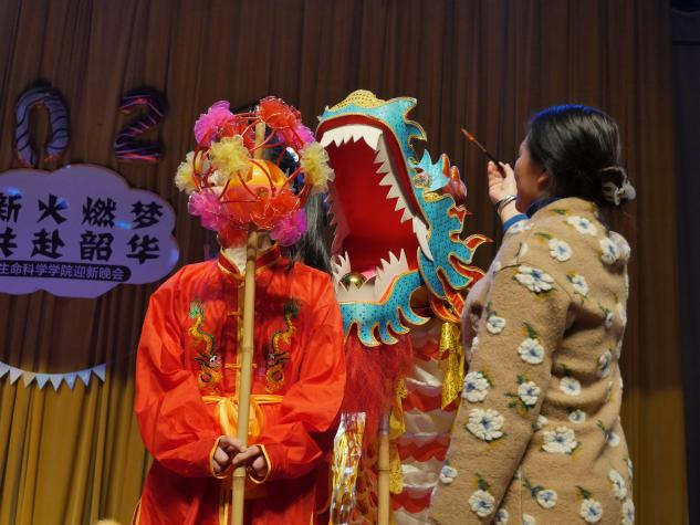 执子龙狮盛会,光大民族气节,弘扬民族精神,共和天地万事春。学院党政班子成员依次登台,为雄狮点睛,随着这一仪式的完成,表演便正式拉开了帷幕。舞狮的动作真是令人赞叹不已!每一个腾跃、翻滚都充满了力量与美感,尤其是那灵动的眼神和威武的姿态,把狮子的神韵展现得淋漓尽致。