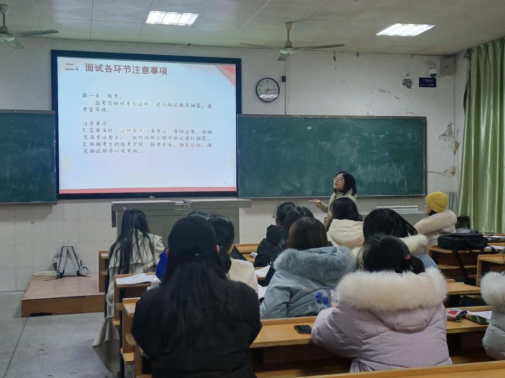 12月22日晚,betway官网在外语楼101召开了教师资格考试面试指导会议,江伟民、王娜、刘宇华等老师,以及2018级通过教师资格笔试的同学参加了本次会议。