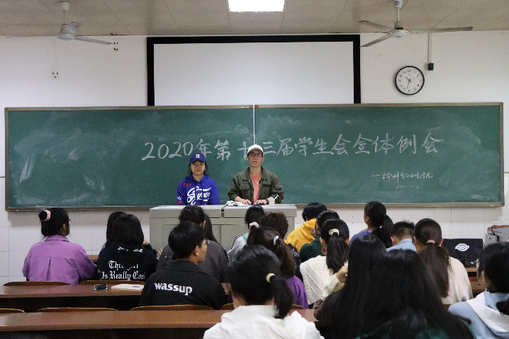 每一位学生会成员依次进行自我介绍。会议现场,气氛愉悦舒适,大家都在彼此认识、互相了解。