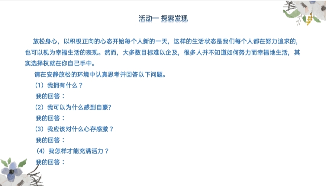 下午三点,刘树芬老师对betway官网学生干部作了“珍爱生命,追求幸福——探索生命与幸福的意义”方面的指导。首先,刘老师通过三起学生自杀案例及一只小蝴蝶吸食罂粟花而死的故事,引入了珍惜自己、珍爱生命的话题,强调生命只有一次,不拿伤害生命的事情开玩笑,只有尊重生命,才能体验人生的真谛。同时,老师还解释了生命的含义是什么,并提出了“我是谁”、“我为什么活着”、“我应该怎样活着”三个问题,让同学们思考“为何而生”。随后刘老师为在场的学生剖析了大学生幸福感的来源和大学生幸福的目标,以便学生更好的生活并珍爱生命。最后,刘树芬老师带着学生进入了探索发现如何努力而幸福的活着和制作自己的生命线活动环节,让同学们对生命、对自己有更深入的了解。刘树芬老师的课堂也让同学们认识到了生命的珍贵,提高了“尊重生命,珍爱生命”的意识;同时让学生懂得做生命的主宰者,努力去实现自己的人生价值,活出最美的自己!