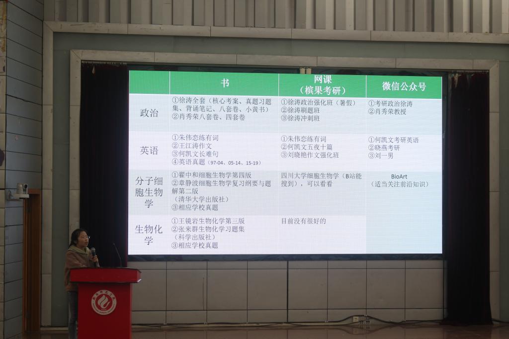 5月8日下午14:30,学院在西校区模拟法庭开展考研经验交流会,生命科学与环境学院党总支书记刘艳波,院长曹丽敏,副院长杨海、易诚,团委书记刘树芬,辅导员许若霏老师以及各专业老师莅临本次交流会。何婷婷,伍牧锋等7位优秀考研学生代表作为嘉宾来到现场,与betway官网16级,17级有意向参与考研的学生分享考研经验。
