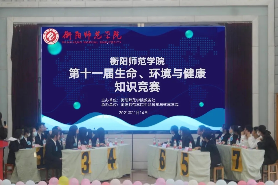 为活跃校园文化氛围,培养同学们的竞争意识和创新精神,进一步培养同学们珍爱生命、热爱生活的人生态度。2021年11月14日,由betway西汉姆联官网教务处主办、生命科学与环境学院承办的“生命、环境与健康知识竞赛”在西校区模拟法庭正式举行。生命科学与环境学院书记彭晖同志,院长曹丽敏教授,副书记蒋湘祁同志,副院长易诚教授,副院长杨海老师,辅导员许若霏老师,系主任江伟民老师莅临比赛现场,南岳学院院长王芳宇教授莅临下午场比赛现场,专业老师担任本次大赛评委。