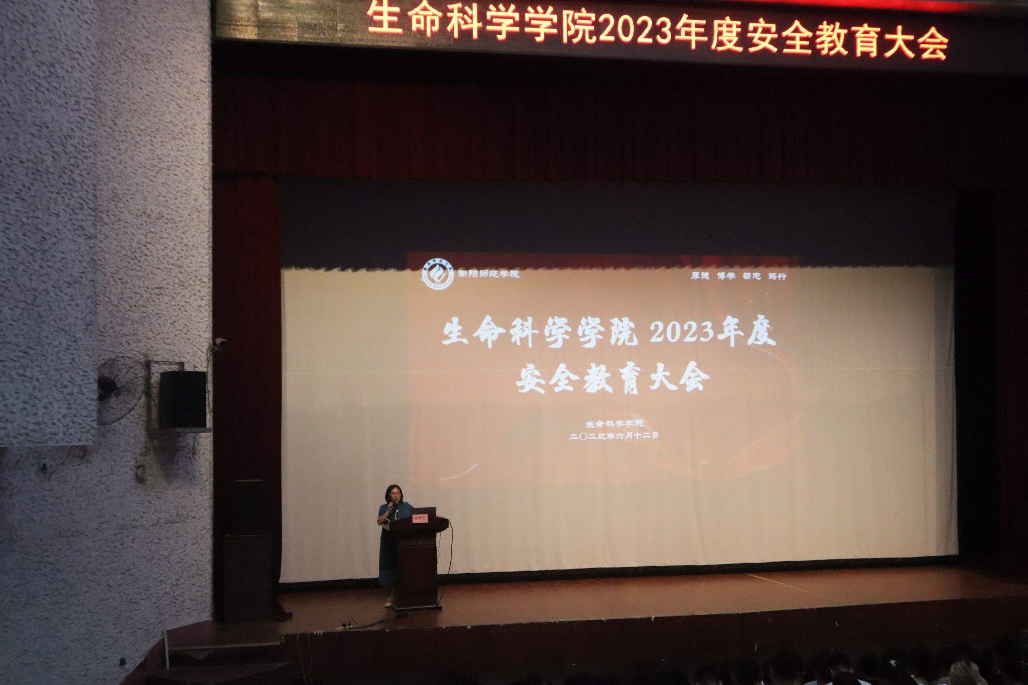 为提高同学们的安全意识,杜绝同学们假期中的安全隐患,构建平安和谐校园,6月12日晚19:30,betway官网于西校区排演厅召开2023年度安全教育大会。大会由学院党总支副书记陈雅斐主持,副院长杨海、辅导员邓明智、曹海鸥、唐乾翔以及学院全体学生参加了此次会议。