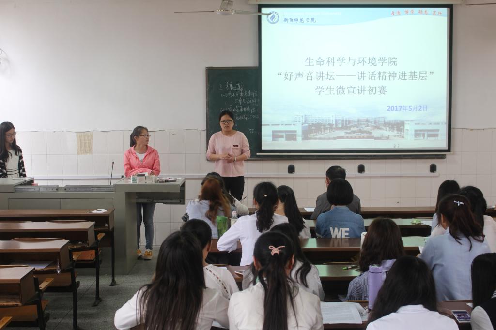 5月11日晚19时,“好声音讲堂-讲话精神进基层”师生微宣讲比赛学生组决赛在东校区音乐厅举行。生命科学与环境学院3支代表队结合自身学习和生活实际,用富有感染力的表达、鲜活真实的事例和充满激情的语言,从不同角度诠释对“习近平总书记系列重要讲话精神”的深刻理解,赢得了观众的热烈掌声。经过激烈地角逐,betway官网15级生物科学1班荣获三等奖,15级生物科学2班、15级环境工程1班荣获优胜奖。