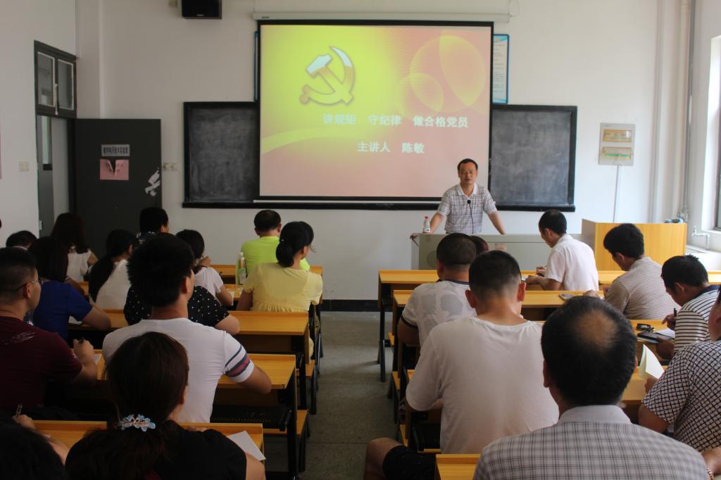 6月29日下午3:00,betway官网副校长陈敏在西综实楼408室做了“两学一做”专题—“讲规矩,守纪律,做合格党员”辅导报告会。生命科学与环境学院、保卫处、后勤处等部门共80余名党员参加了报告会。