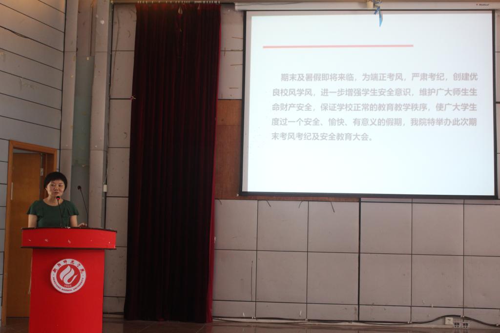 本次大会旨在严肃考风考纪,创建优良校风学风,进一步增强学生安全意识,保证学校正常的教育教学秩序,使广大学生度过一个安全、愉快、有意义的假期。