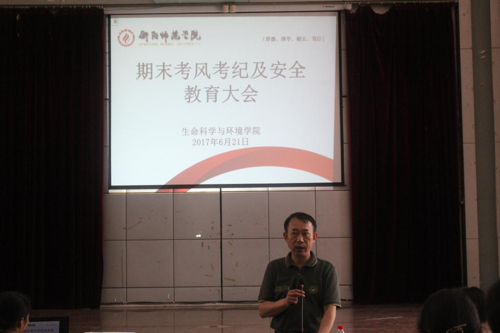 为弘扬优良学风,严肃考风考纪,同时增强学生假期安全防范意识,6月21日,生命科学与环境学院考风考纪暨假期安全教育大会在西校区模拟法庭召开。学院党总支书记刘艳波、院长曹丽敏、党总支副书记廖海华、学院辅导员以及全院学生出席了会议。